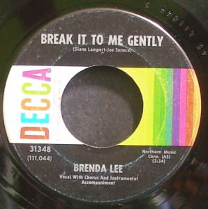 “Break It To Me Gently” reached the Top 5 in early 1962. The music was written by Joe Seneca. Never heard of him, you say? Well, here’s a fun fact for you: you may know him better as a bit part actor in movies and TV during the 70s, 80s, and 90s, or from his most prominent role, as blues man Willie Brown in the 1986 Karate Kid-meets-Robert Johnson classic, Crossroads. Seneca wrote another moderate hit, and Lee had multiple #1’s, but it’s “Break It To Me Gently” that resonates across the decades on perfectly plucked heartstrings.
