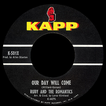 The group heard the demo of an unrecorded song called “Our Day Will Come” and thought for sure it could be a hit. The owners of the song, however, wanted an established singer (in this case, Jack Jones, who later sang the Love Boat theme — welcome aboard, it’s loooove!) to record the track, not some unknown R&B group from the middle of nowhere Ohio. Ruby and The Romantics persuaded everyone to give them a chance, and they proceeded to record two versions, one a straight-ahead R&B ballad, and the other a light bossa nova with a chiming Hammond organ solo.