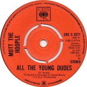 Bowie, a huge fan of Mott’s music, refused to let them break up and offered to produce their next album and give them a song if they stayed together. The band rejected his first offering, the as yet unreleased “Suffragette City” from the upcoming Ziggy album, so Bowie wrote them a song to order, the anthemic, glam-rock sing-along “All The Young Dudes” (he apparently first played the song to the group while wearing a blue catsuit and playing a blue acoustic guitar, because of course he would). This time, Mott accepted.