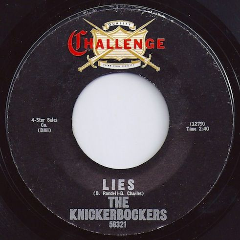 Beau Charles and saxophonist Buddy Randell got together one day and wrote “Lies” in about half an hour, the whole band subsequently recorded a demo — which producer Jerry Fuller then rearranged — and not long afterwards, The Knickerbockers found themselves at Sunset Sound Studio in Los Angeles, where legendary engineer Bruce Botnick (soon to meet up with destiny and The Doors) captured the new song on tape. The vocals were recorded separately at Leon Russell’s home studio and Bob’s your uncle — ready, steady, go!