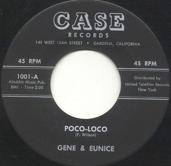 Gene and Eunice scored another minor R&B hit later that year but wouldn’t find real success again until they teamed up with producer Gary Paxton (remember Gary?) in 1959. That year, they took a little bit of rockabilly and a little bit of R&B, a little bit of Texas and a little bit of Cali, and made a rollicking little record called “Poco Loco” ( or “A Little Crazy”) which climbed as high as #48 on the Hot 100, by far their biggest popular hit under their own name. They wrote the song specifically for the Mexican market and the single did, in fact, do well in Mexico City, too.