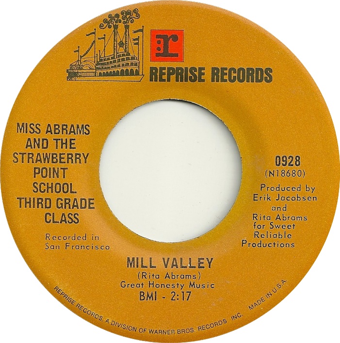 Abrams managed to get a job teaching kindergarten at the Strawberry Point School and found herself so happy and inspired by her new surroundings that she wrote a simple song to sing along with the kids about their hometown. Shortly afterwards, she attended one of those laid back California parties of the time where anyone might show up, and someone pointed out record producer Erik Jacobsen (best known for producing all of The Lovin’ Spoonful’s hits and hot off of working on “Spirit In The Sky” with Norman Greenbaum and this guy). Coincidentally, the only three records Abrams owned were all produced by Jacobsen. A couple of weeks later, spotting him on the dock where he kept his houseboat, she walked up and told Jacobsen about her children’s song and he asked her to send him a demo.