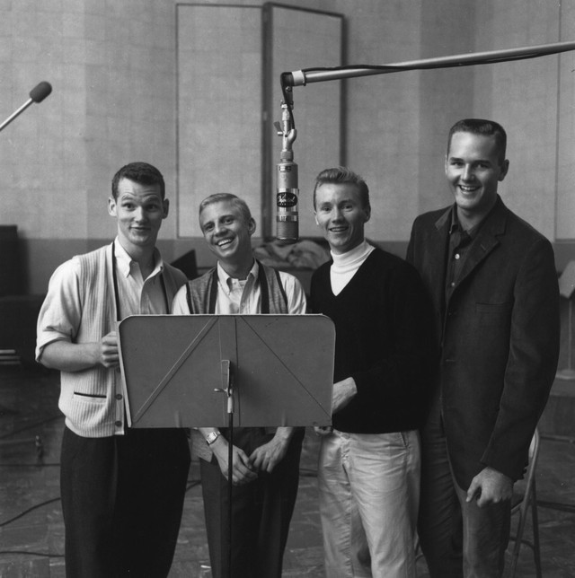 Larson and Belland formed a vocal group with two underclassmen named Ed Cobb and Marv Ingram and the quartet debuted as The Four Preps at a high school talent show. Two years later, in 1956, they performed at a UCLA sorority party where a friend secretly recorded their performance. It actually sounded pretty good, so Belland took the tape and went from one end of Sunset Boulevard to the other in an attempt to find anyone in the music business who wanted to hear it. Luckily, his efforts landed the group a manager who played it for novice Capitol producer Voyle Gilmore (who only had one album in his credits as of yet, but that album was Frank Sinatra’s classic, In The Wee Small Hours) and he signed them to Capitol Records only a few days later.