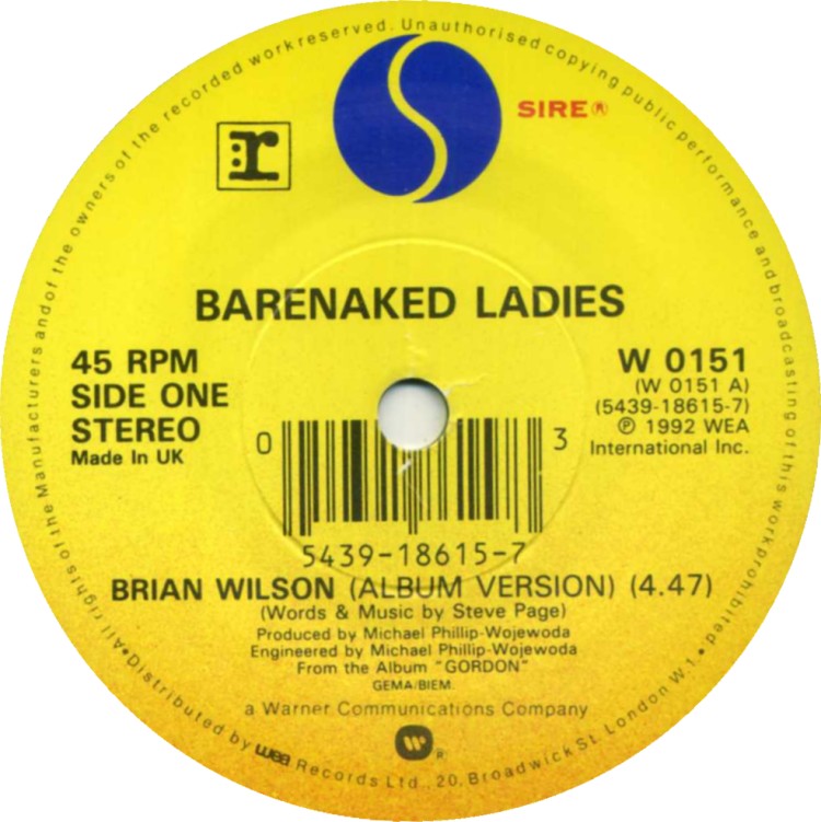 The above is the studio version of “Brian Wilson,” but when the live version started to gain radio play in 1997 the attention and name recognition it brought to the band helped Barenaked Ladies score a surprise #1 in 1998 with “One Week” (NB: those rap verses are improvised):